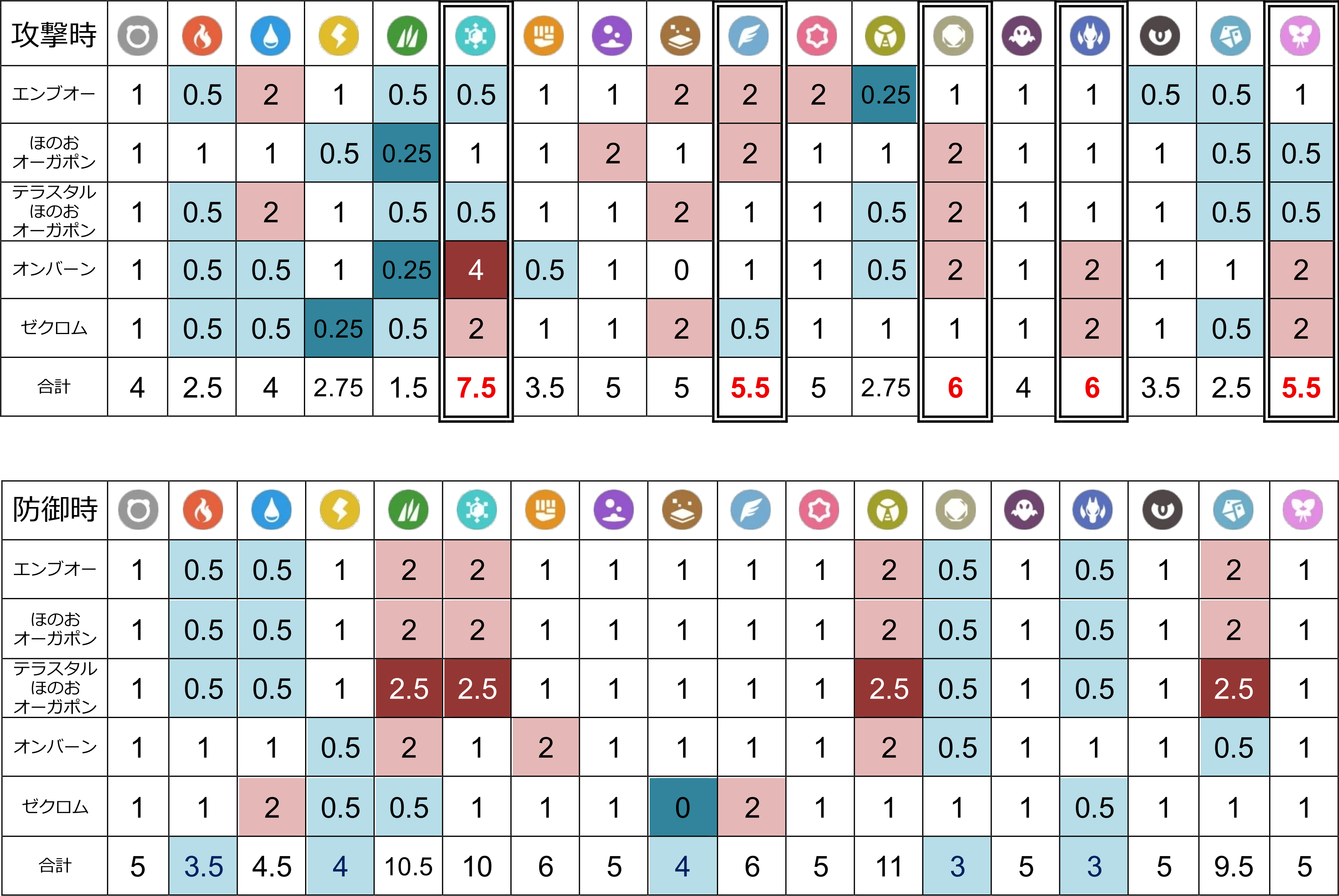 テラバーストのちょうばつぐんのダメージ計算が不明なため、ほのおオーガポンから受けるダメージを2.5と表記してあります。ばつぐんよりは痛い。